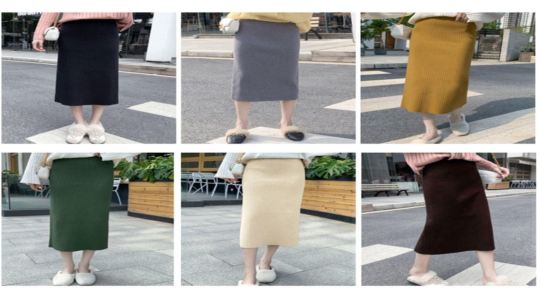H라인 허리밴딩 스커트 여자 골지 스타일 니트