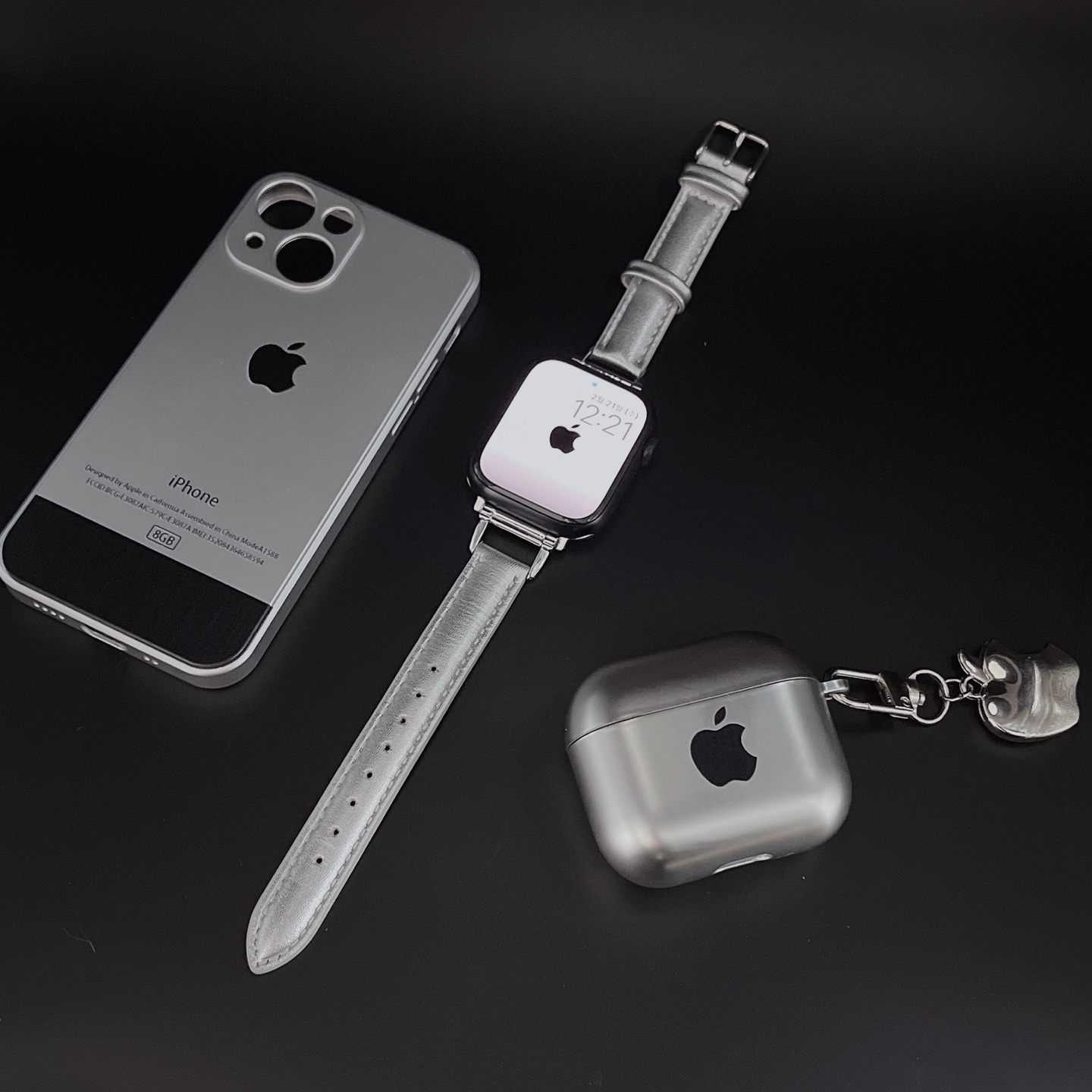 애플워치 유광 실버 명품가죽 스트랩 호환 38/40/41mm 42/44/45mm