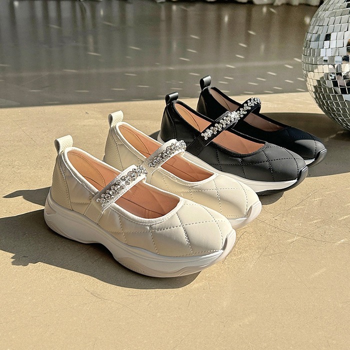 케일런 초경량 쿠션퀼팅 큐빅밴딩 통굽 키높이 스니커즈(4cm)