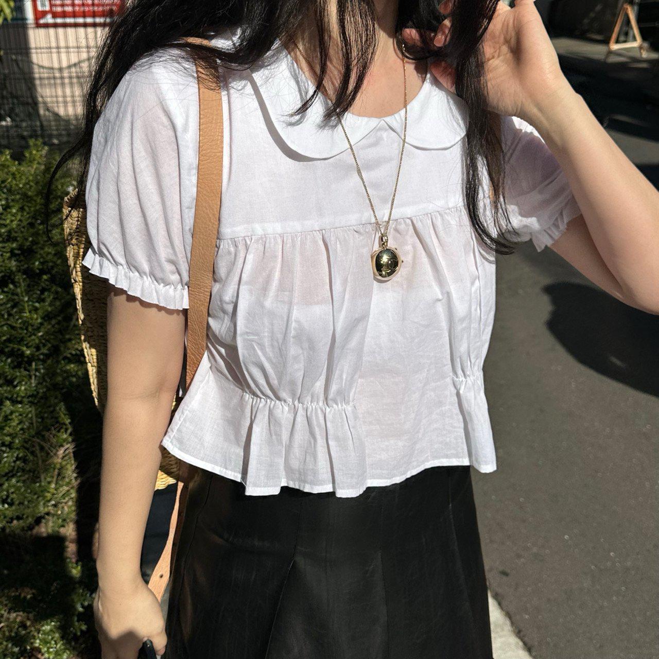 Aprilribon 에이프릴리본 스윗 블라우스 프릴 반팔 크롭 bl 2colors