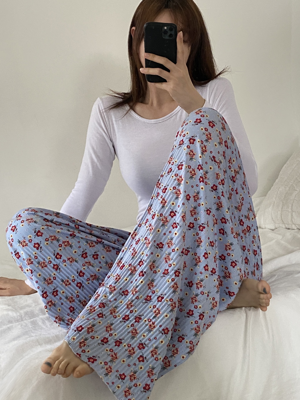 여름 플리츠 꽃무늬 냉장고바지 촌캉스 할머니 꽃바지 아사 면 100% 몸빼바지