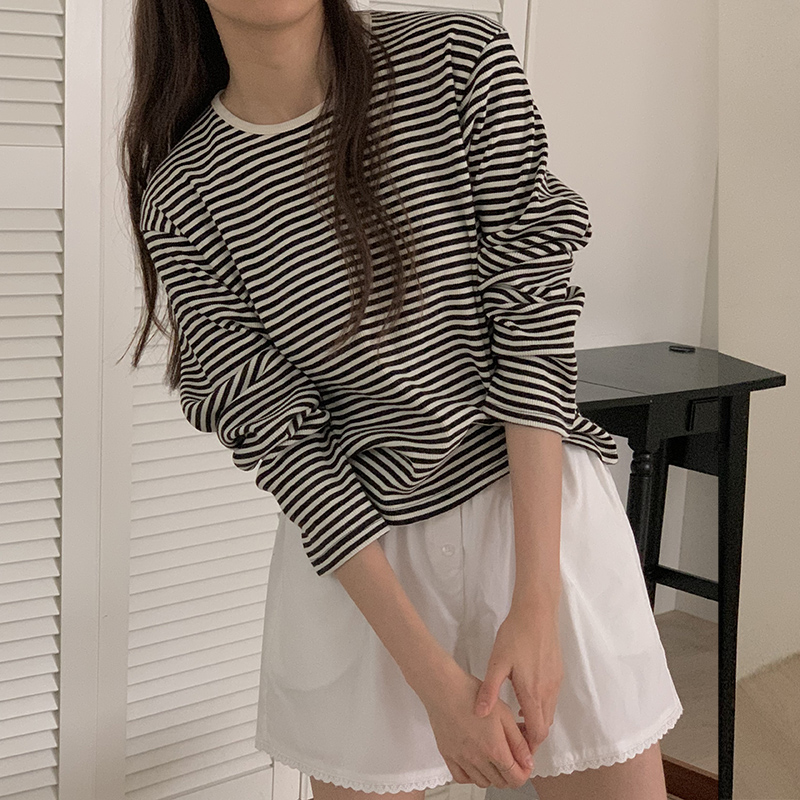 델리 골지 스트라이프 단가라 긴팔 티셔츠