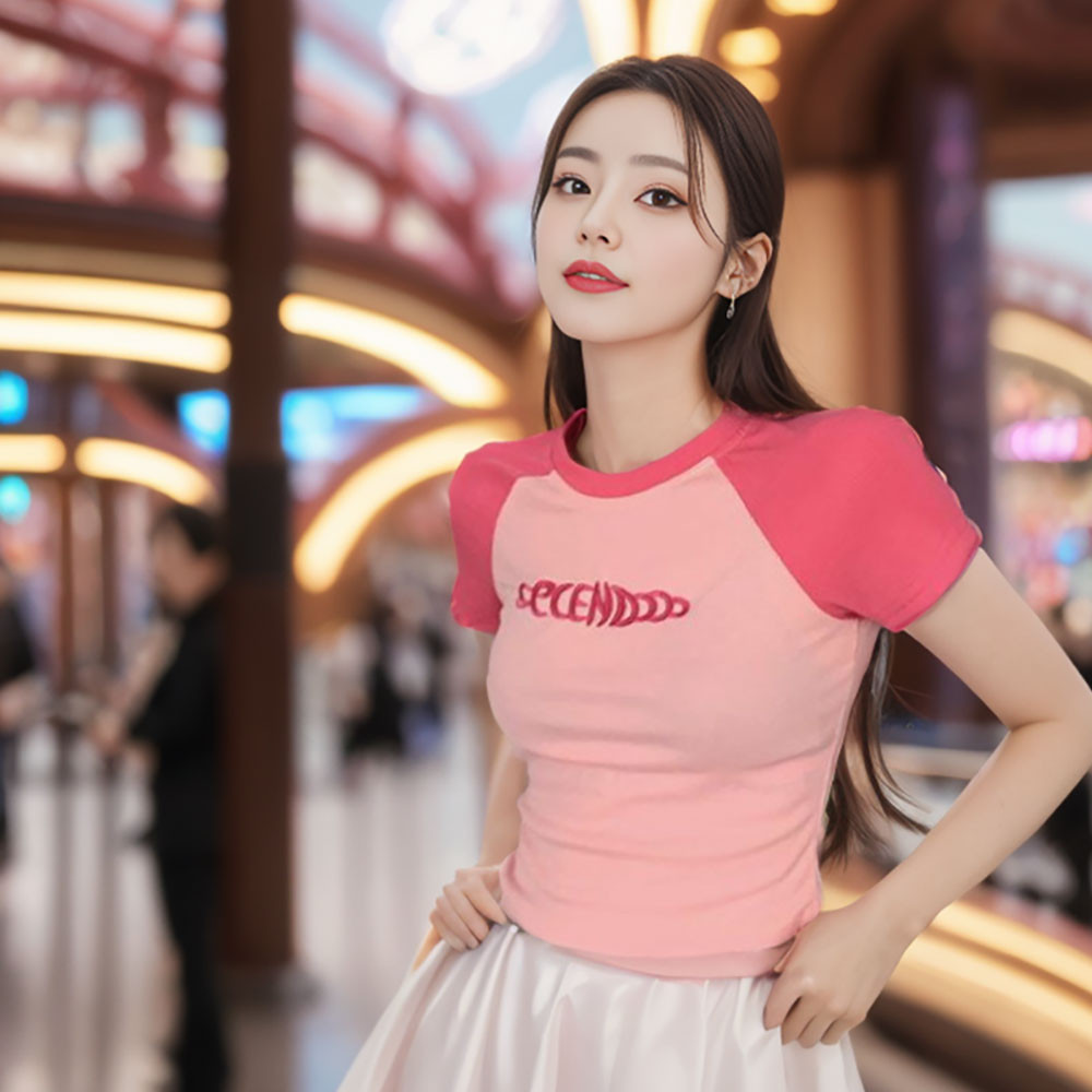 세미 크롭 티셔츠 여성 반팔 티 secendooo 라운드 넥