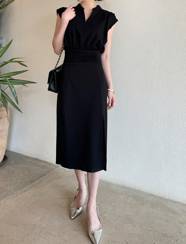 아덴 튤립 원피스 (봄 신상 간절기 하객룩 오피스룩 모임룩 셔링 퍼프) - 블랙