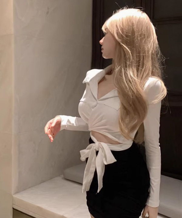 섹시디펜더 매듭크롭셔츠 (셔츠:화이트,블랙) #섹시 #기념일 #파티룩 #페스티벌 #클럽