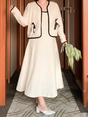 [55-99]빅사이즈 메리드 배색 나시 뷔스티에 리본 셋업 A라인 플레어 롱 원피스