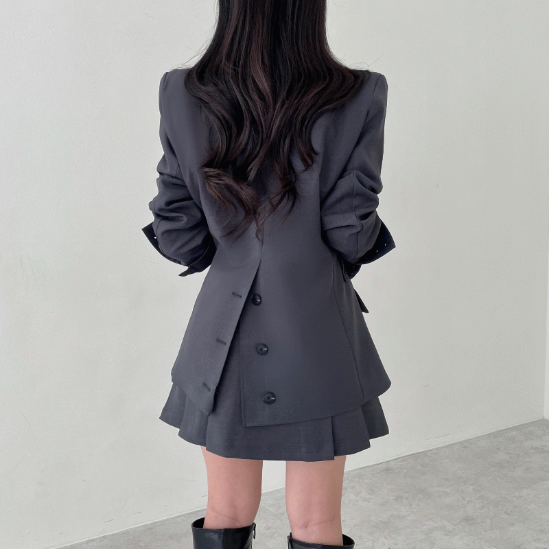 [자체제작][투피스set] 테일러 쓰리포켓 뒷트임 오버핏 와이드 하프 자켓 (하객룩/데이트룩/출근룩/하프자켓/트임자켓)