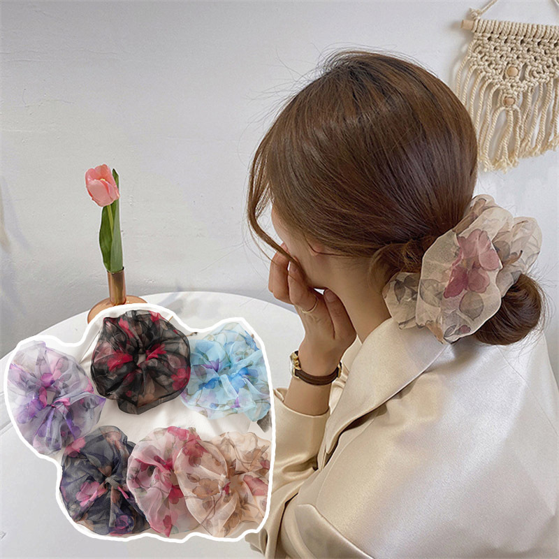 [블랑블랑]꽃무늬 쉬폰 헤어슈슈 ELH-030