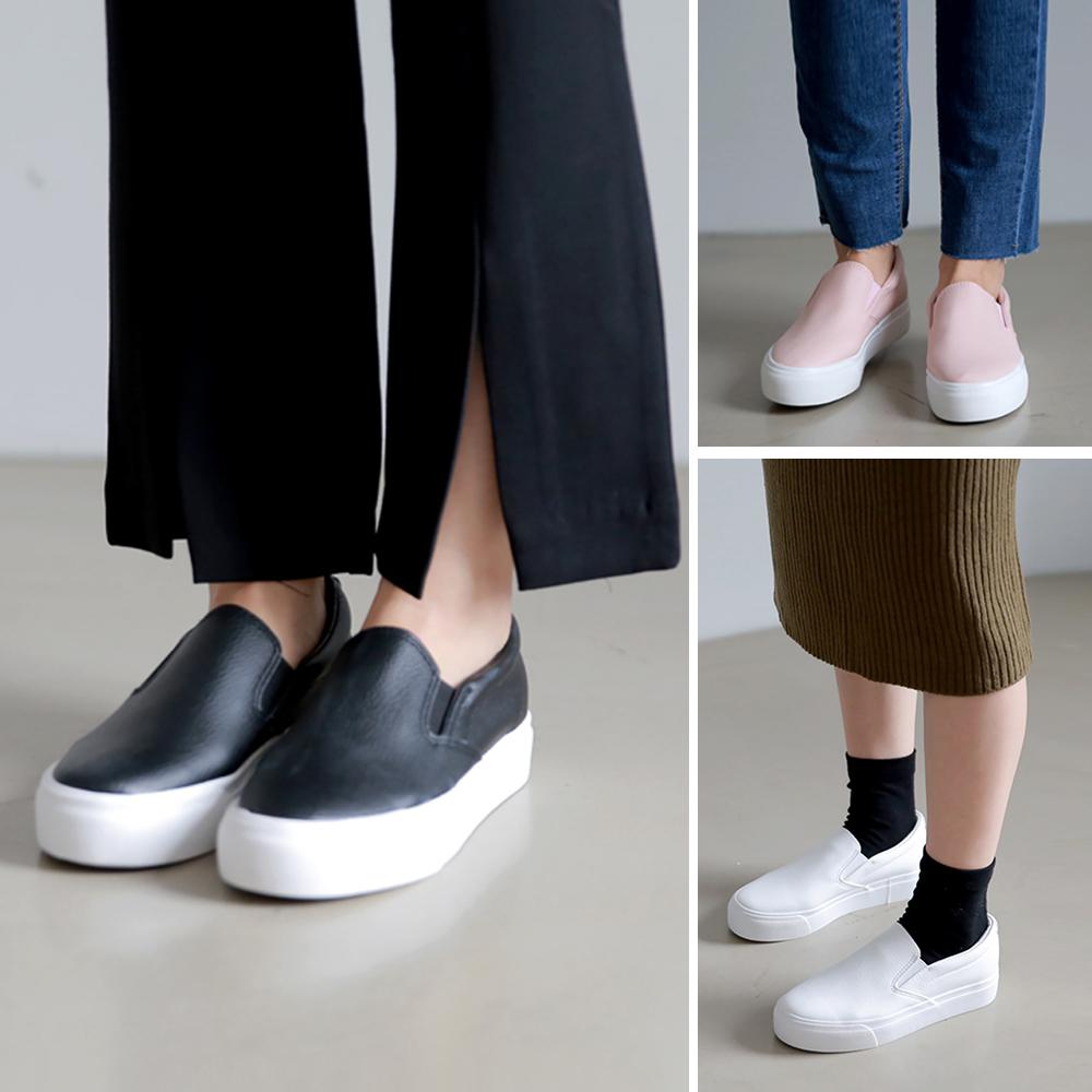 여성 가죽 키높이 단화 레더 통굽운동화 굽높은 스니커즈 3cm 굽있는운동화