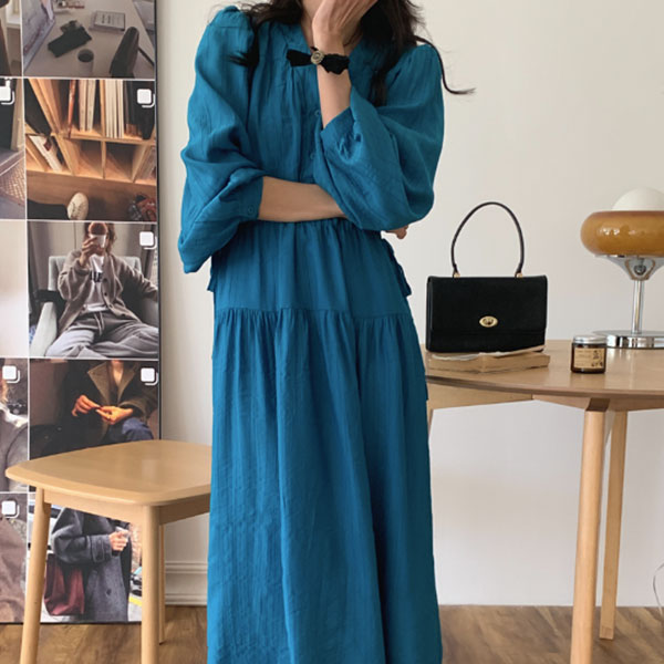 프랜치 브이넥 퍼프소매 A라인 간절기 봄 원피스 K-1132#