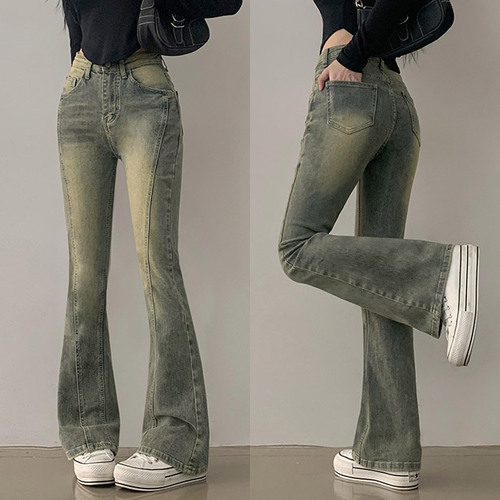 [숏,롱/기장선택/핏맛집!] 로치 하이웨스트 부츠컷 절개라인 캣워싱 데님 팬츠 (6color)