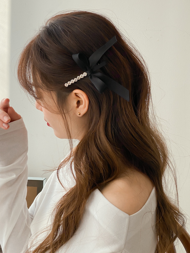 리본일자큐빅 옆머리 헤어 집게핀 4color