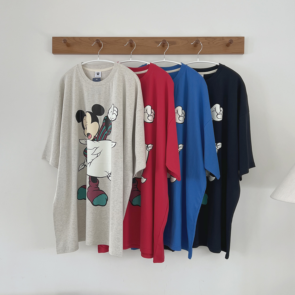 디즈니 굿밤 미키 티셔츠 국산 빅사이즈 오버핏 롱 루즈핏 커플 반팔티