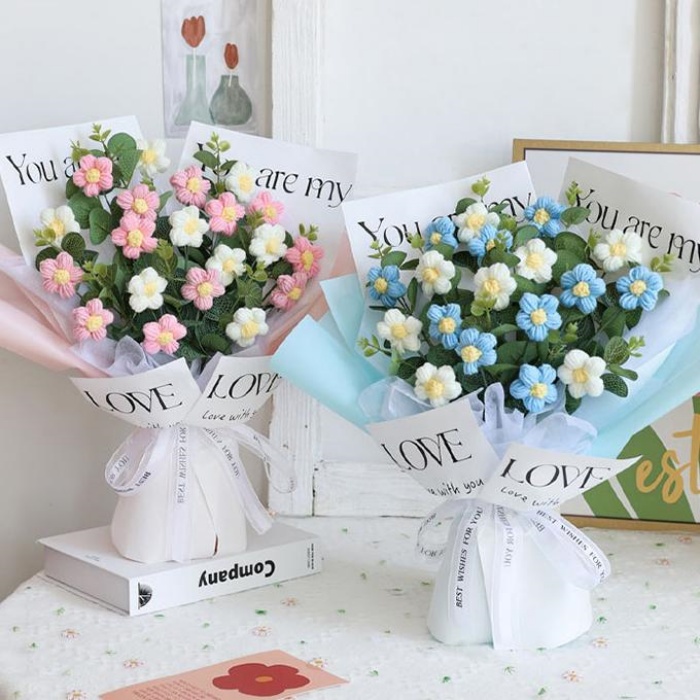 뜨개질 꽃다발 뜨개꽃 한송이 꽃다발만들기 6컬러 - 꽃다발선물 조화꽃 코바늘 뜨개 꽃 완제품 DIY 손뜨개 니트꽃 가짜꽃 조화 이벤트 기념일 선물