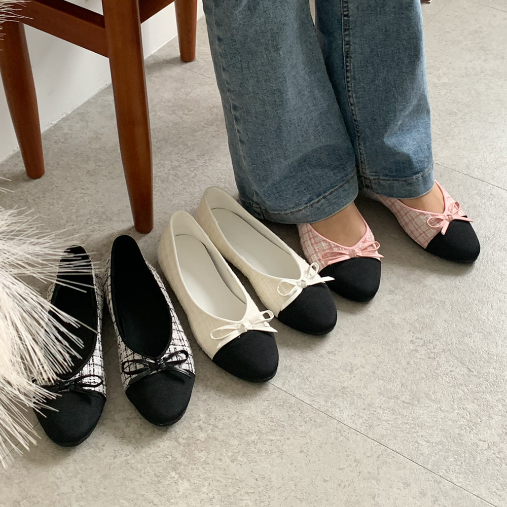 아르엘 리본 트위드 배색 투톤 하객룩 웨딩 발편한 리본 플랫슈즈 단화 1cm