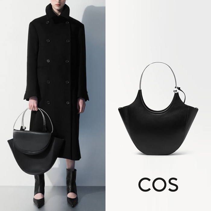 COS 코스 THE HALO 가죽 블랙 토트 백