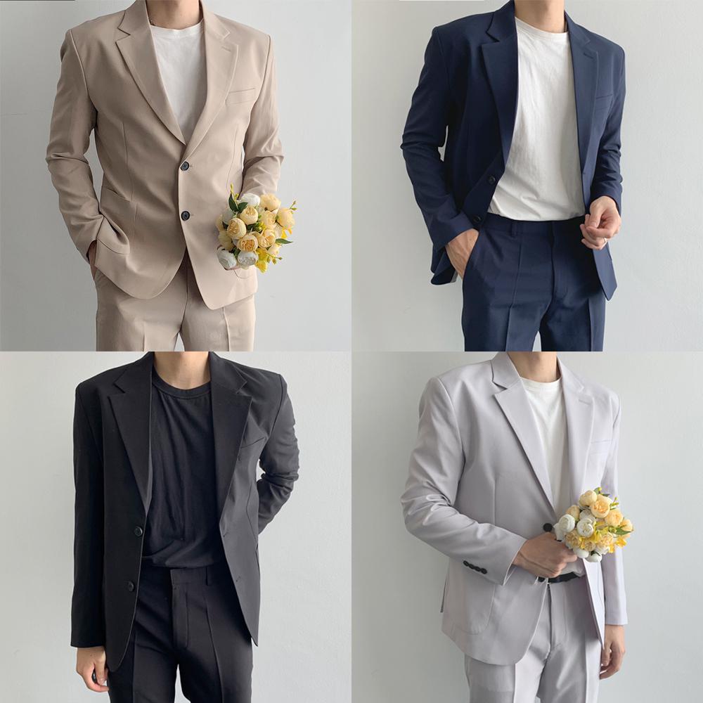[남친선물] 구김없는 스판 편한 수트 셋업 베이지 그레이 블랙 네이비 링클프리 남친룩 정장 결혼식 하객룩 세트 장례식 상견례 남자친구 남친 선물 남자옷20대 30대