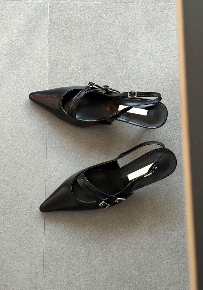 스틸레토 벨티드 스트랩 미들굽 슬링백힐 6cm 3컬러