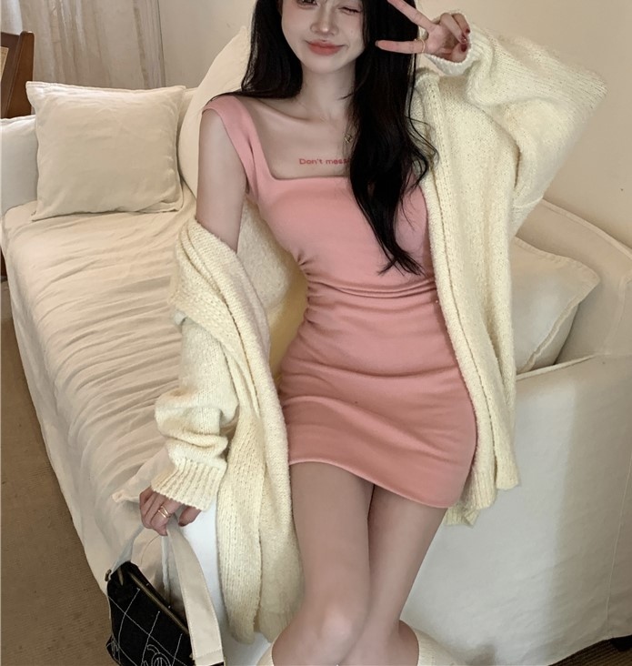 [상큼봄코디/요정룩/코디기본템] 핑크 나시 원피스 가디건 코디
