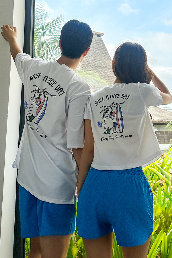 [오늘출발] 화이티 서핑 반팔티 커플룩