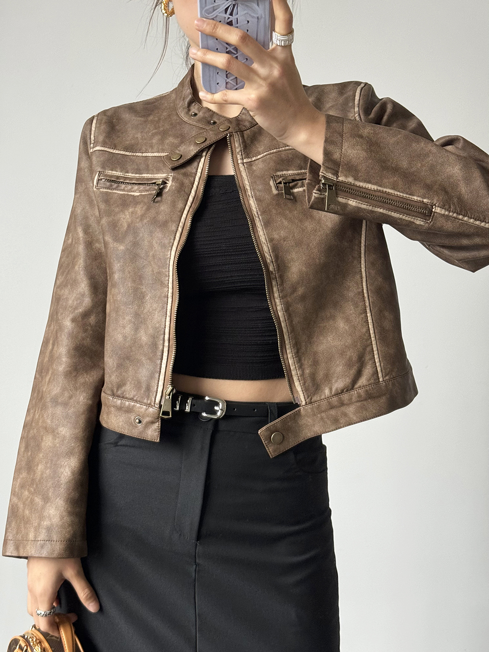 빈티지 워싱 가죽자켓 봄 레더 크롭 숏자켓