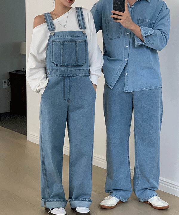 [데일리템/청청코디♥] 스프링 연청 데님 셔츠 멜빵 오버롤 팬츠 커플룩 시밀러룩