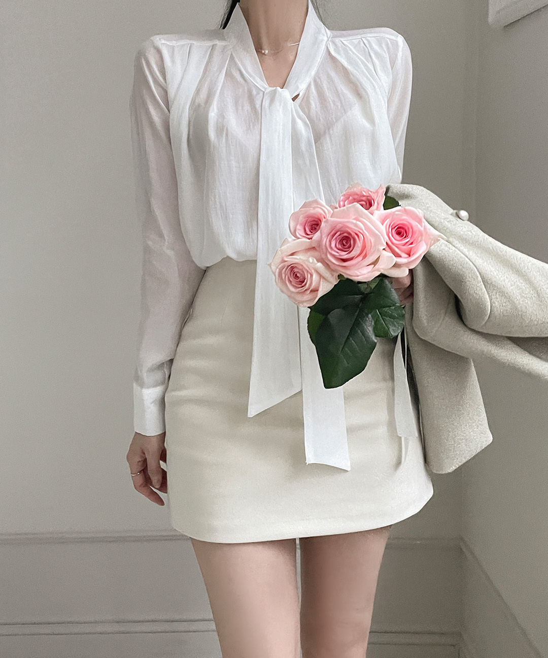 오브덴 타이 셔링 투웨이 블라우스