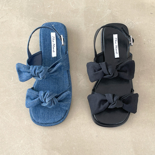 바바라 왕리본 데님 슬링백 스트랩 샌들