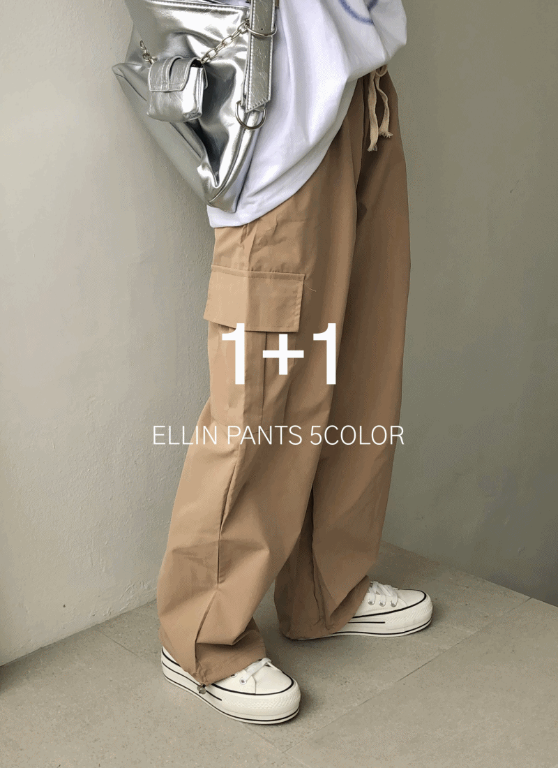 (1+1 증정 이벤트) Ellin pants 엘린 폴리 와이드 카고 나일론 팬츠 밴딩 스트링 투웨이 바지