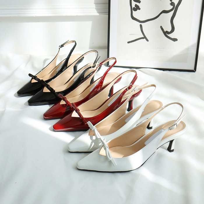 세이플 애나멜 각코 V라인 띠리본 슬링백힐(6cm)