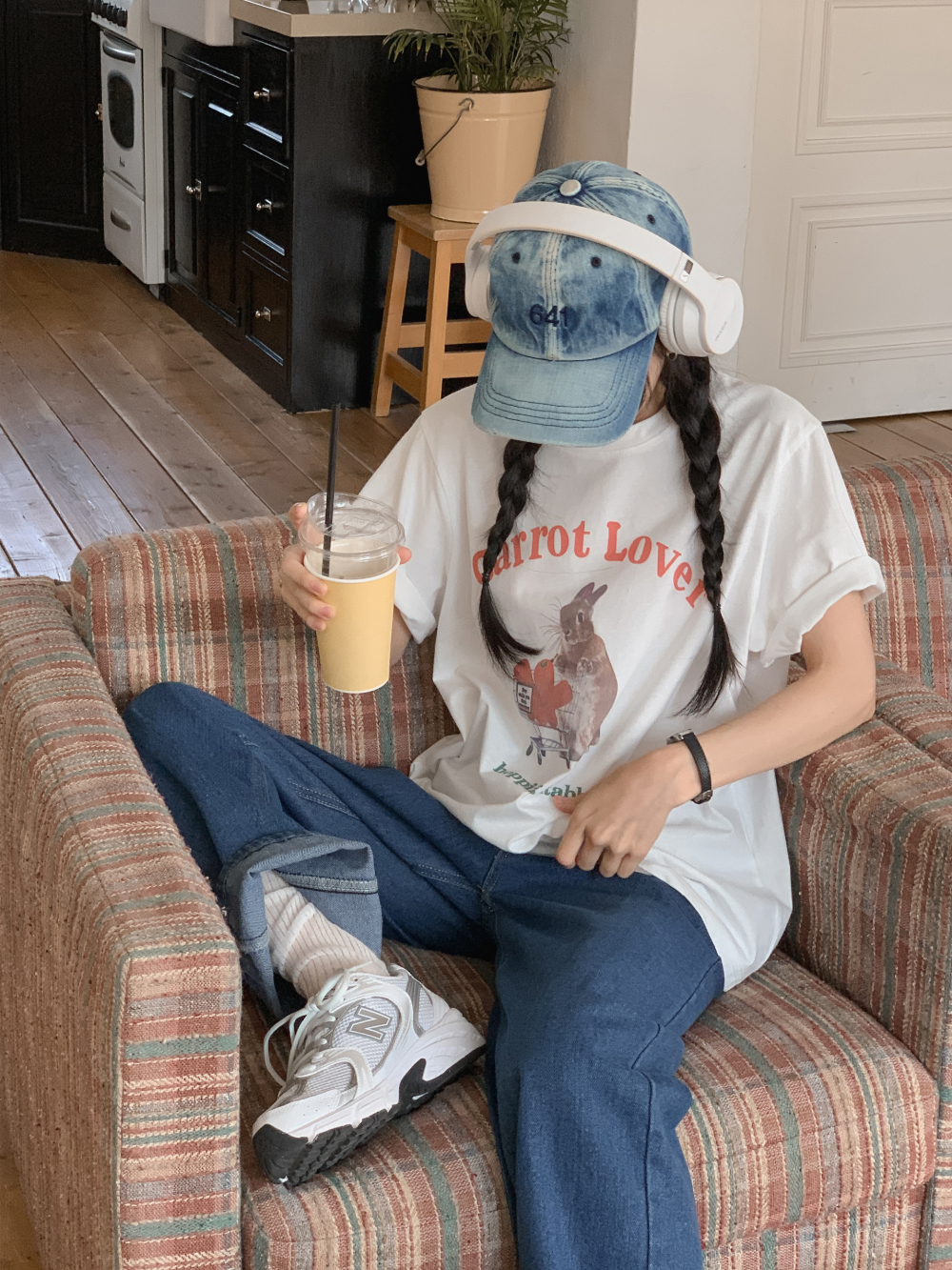 [🥕🐰🛒프린팅티셔츠/갈라짐❌] 빈티지 루즈핏 코튼 토끼 반팔 티셔츠 캐롯