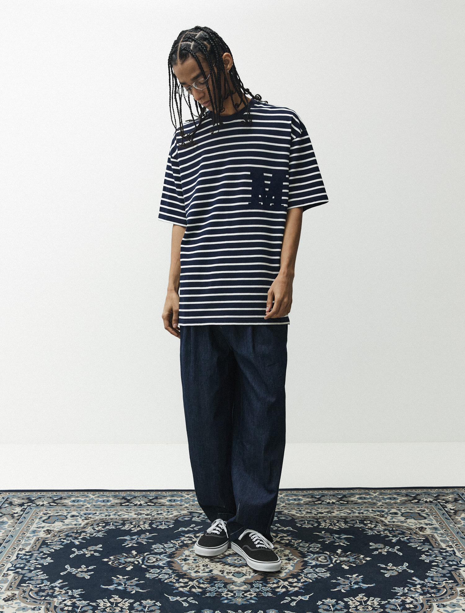스웩버 3546 스트라이프 오버핏 네이비 반팔티