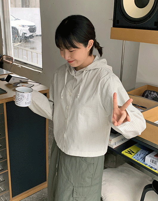 모우이 스트라이프 크롭 후드 셔츠 (2color)