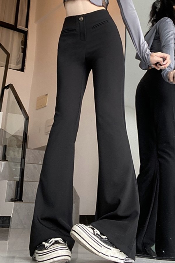 란지 하이웨스트 타이트 캐주얼 플레어 바지