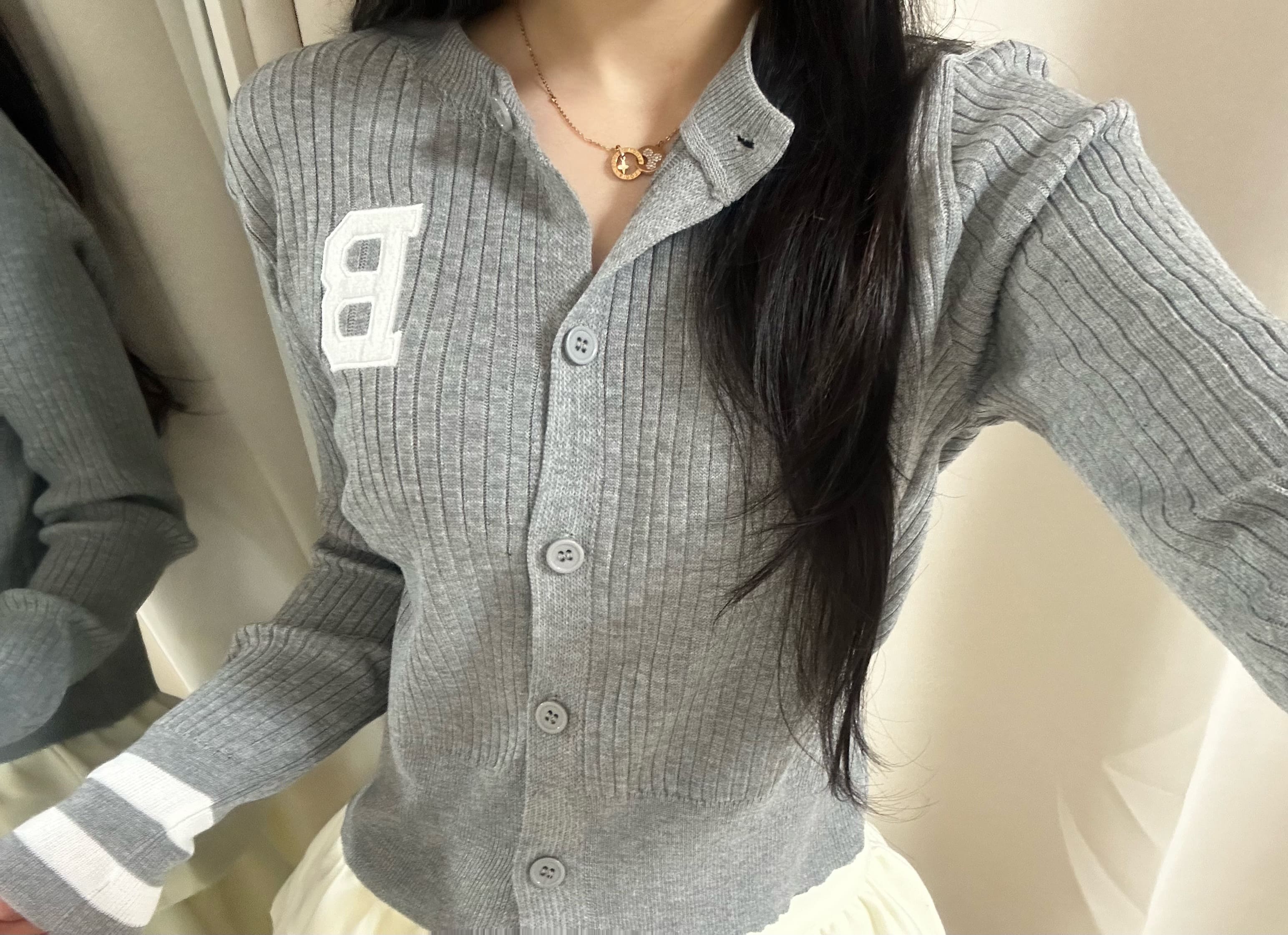 B포인트로고 자수 데일리 니트가디건 -3color