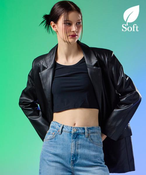 [박민영,박규리,고우리 착용] WOMEN 오버핏 소프트 가죽 레더 블레이저[BLACK] 가죽자켓 ver.
