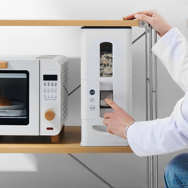 [🙃자취 필수 원터치 쌀보관통🌾] 쌀밥 쌀 잡곡 보관 보관함 보관통 밀봉 밀폐 습기 냄새 제거 계량컵 계량통 서랍형 먼지 원룸 신혼 주방 공간 틈새 활용 다용도실 팬트리 펜트리