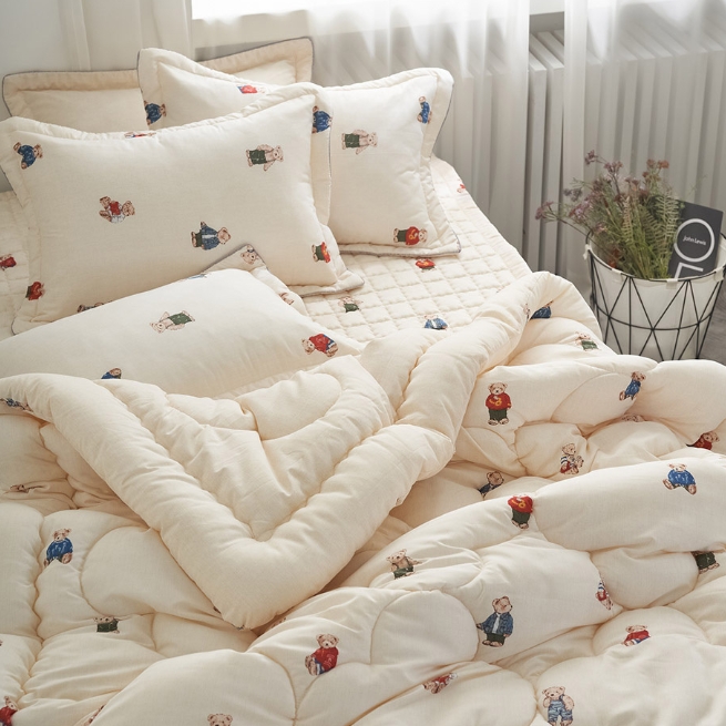 [🐻곰돌이 패턴 차렵 이불세트🐾] 자취 신혼 원룸 침대 이불 침구 베개 패드 국내생산 국내제작 귀여운 폭신 푹신 보들 부드러운 촉감 감촉 소프트 마이크로 슈퍼싱글 이사 집들이