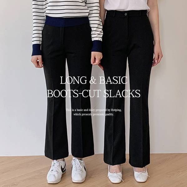 [롱&기본][MADE] 라이탄 속밴딩 스판 슬림부츠컷 슬랙스(25~36) (빅사이즈슬랙스-부츠컷슬랙스-슬림핏-체형커버-밴딩슬랙스-오피스룩-하객-데일리룩-뒷밴딩슬랙스-스판슬랙스)