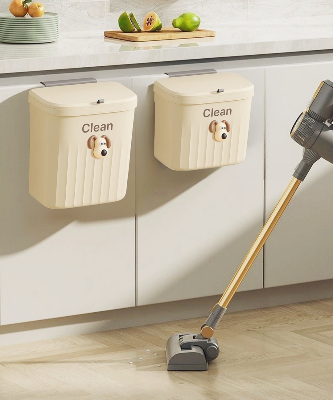 🎀신상이벤트🎀버터크림 벽걸이형 음식물 슬라이딩 쓰레기통 스탠드 휴지통 2size