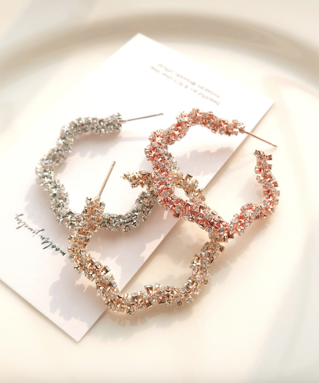 큐빅 블링블링 플라워 링 귀걸이 (3colors)