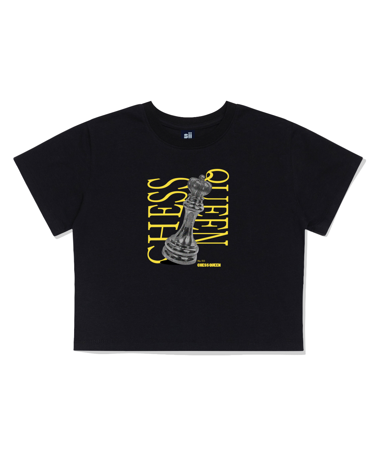 옐로우 체스퀸 로고 프린팅 크롭반팔티 블랙