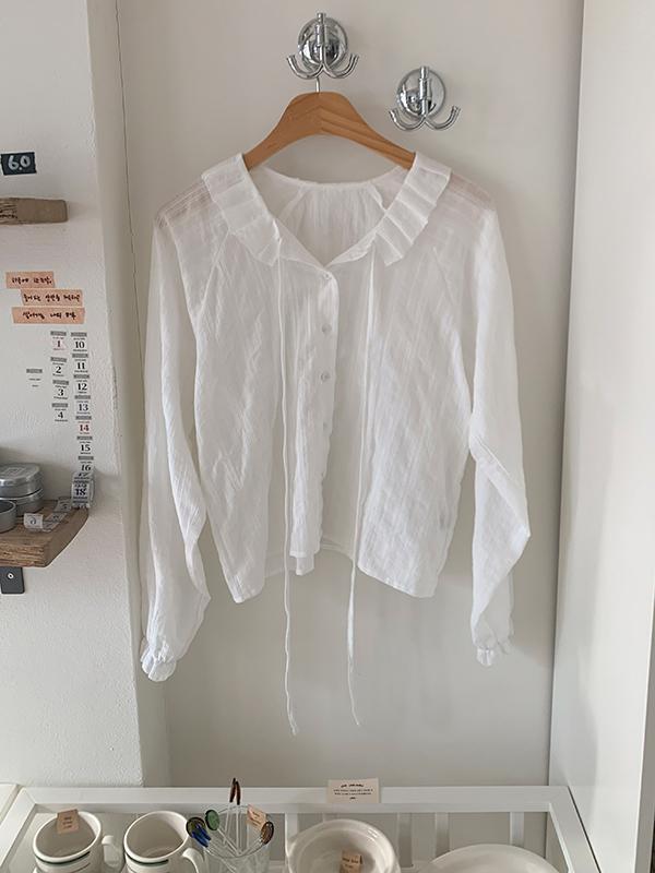 [🌸하객룩]컴프 봄 카라 리본 스트랩 루즈핏 블라우스(2color)