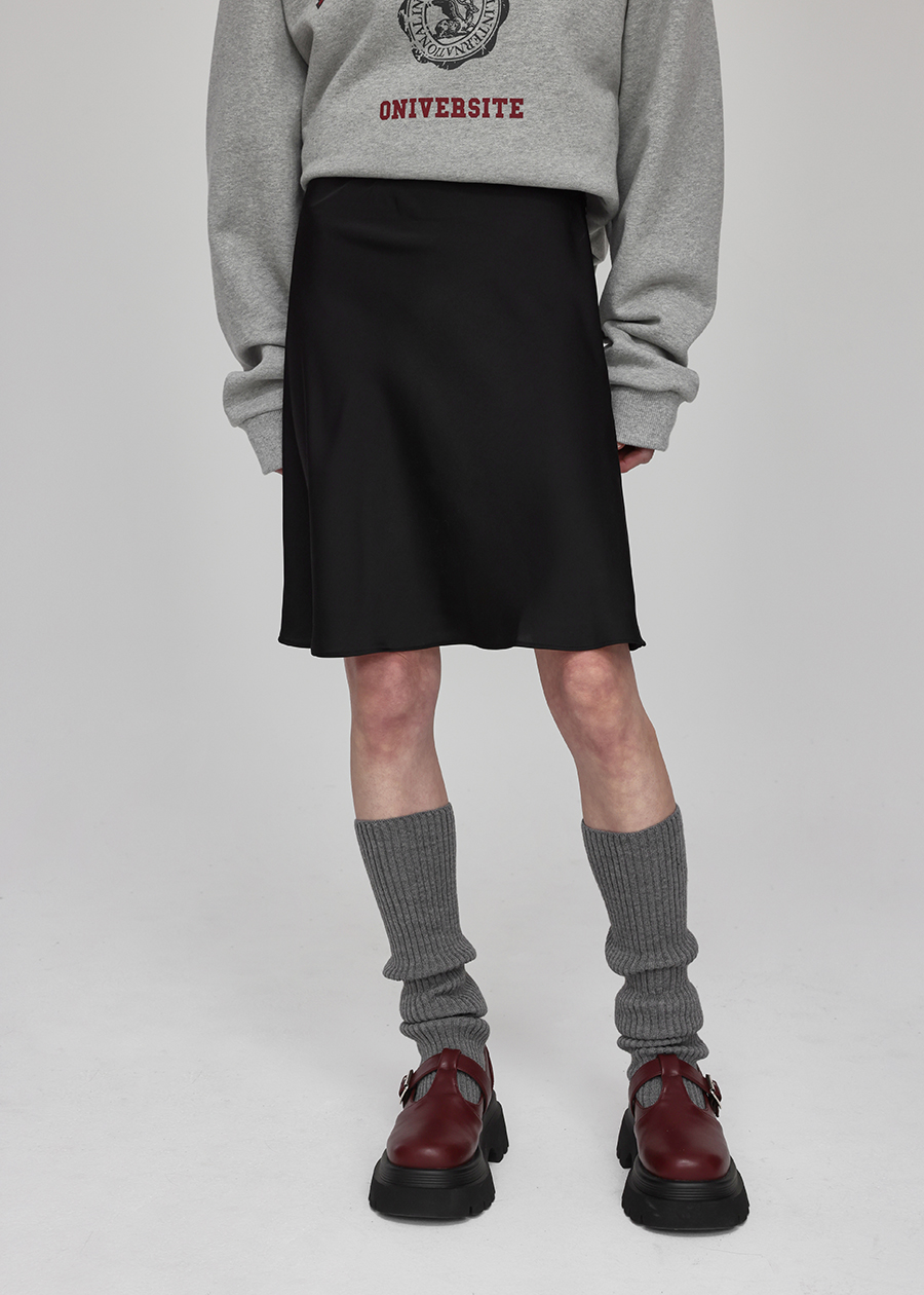 [1천장판매] 러넝 새틴 플레어 미디스커트