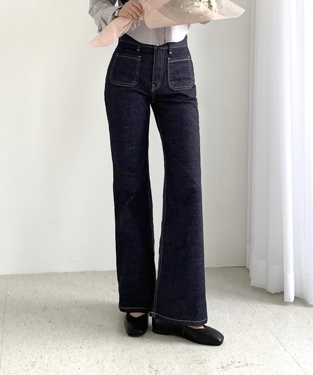 생지데님 부츠컷 청바지 논페이드 진청데님 하이웨스트 봄 세미와이드 앞포켓 청바지