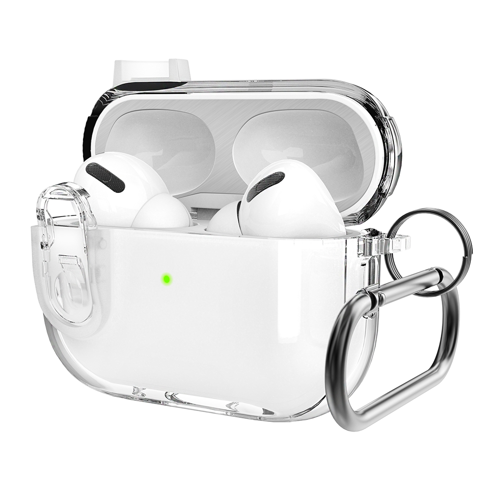 [우체국택배/빠른배송🚀] 투명 변색없는 에어팟 케이스 변색방지 분실방지 도어락 TPU 프로 3 2 1 세대 + 철가루 방지 스티커 + 카라비너 고리 세트
