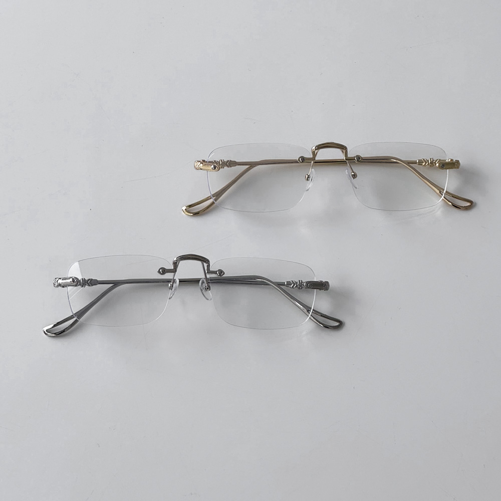 [긱시크/블루라이트차단] 클린 너드 메탈 사각 실버 무테 안경 2color