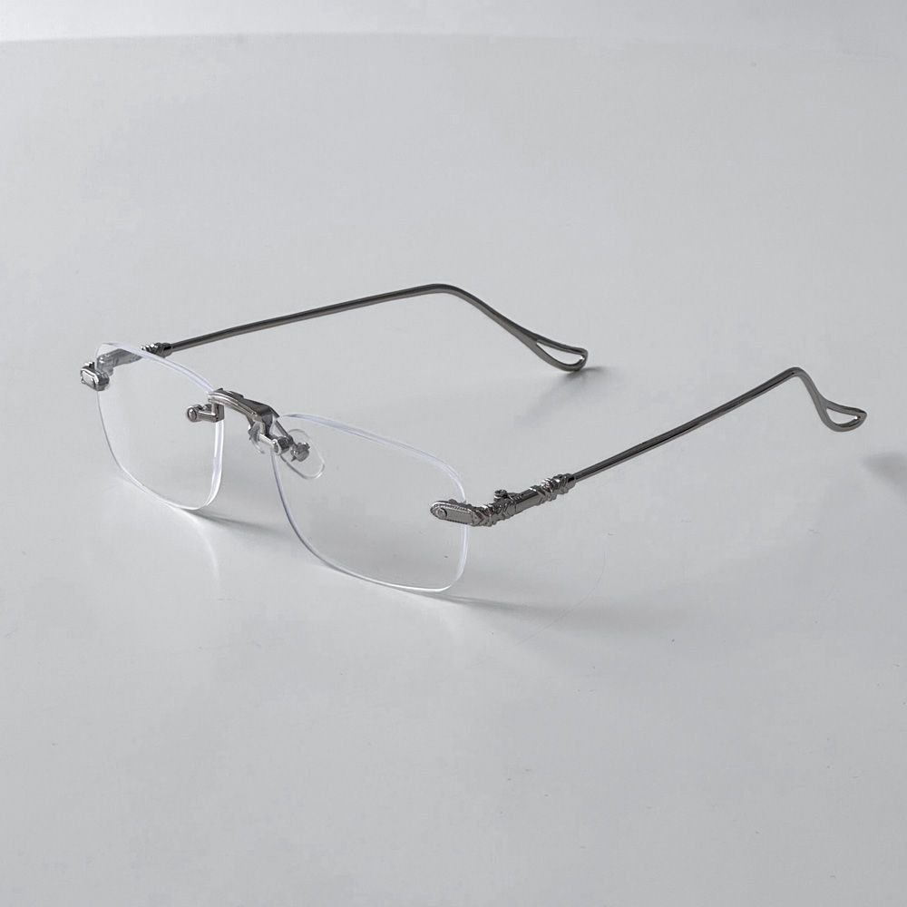 [단독] 클린 너드 메탈 사각 실버 무테 안경 2color