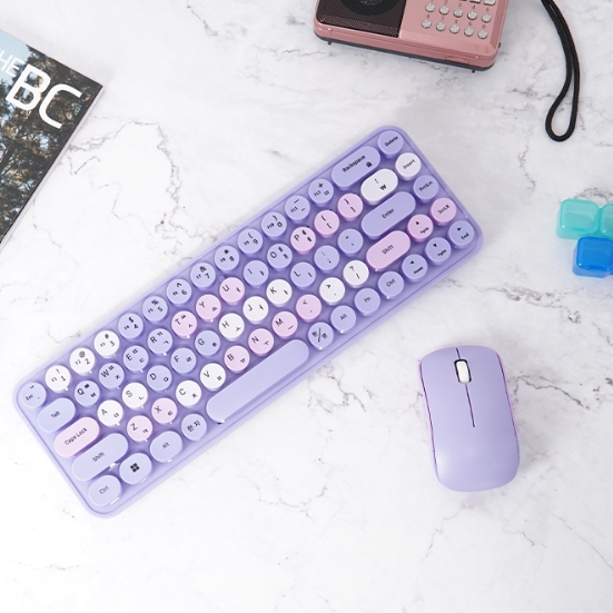[⌨레트로 키보드 마우스 세트🖱] 저소음 무선연결 자동인식 무선 리시버 키감 멤브레인 고감도 사무용 서재 컴퓨터 노트북 가정용 홈오피스 사무실 오피스 데스크테리어 인테리어 퍼플