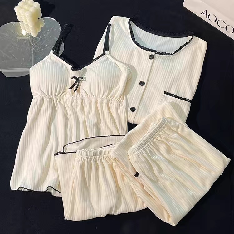 🖤[4종세트]🖤 순면 나시 봄 여름 가을 잠옷 파자마 가디건 세트 4종 구성 여성스러운 예쁜 청순한 반바지 긴바지 면바지 면잠옷 가을 신상 캡내장 나시조절 홈웨어 선